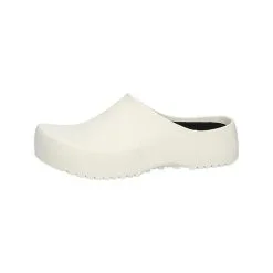 Sicherheitsklasse: EN ISO 20347:2012; OB A E FO WRU SR, Zehenschutz: ohne, Durchtrittschutz: ohne, Obermaterial: Glattleder, Farbe: weiß, Innenfutter: Leder, Sohle: rutschhemmende Gummilaufsohle, Weite: 10, Extras: feststehender Fersenriemen, verstellbarer Ristriemen, Lederdecksohle, Sanitized behandelt, beständig gegen Säuren, Laugen und Kraftstoffe, antistatisch