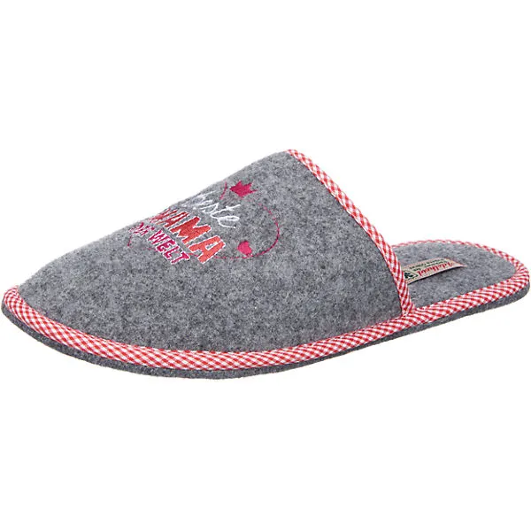 Warme Adelheid Hausschuhe mit „Beste Mama der Welt“ Stickerei auf der Vorderkappe.