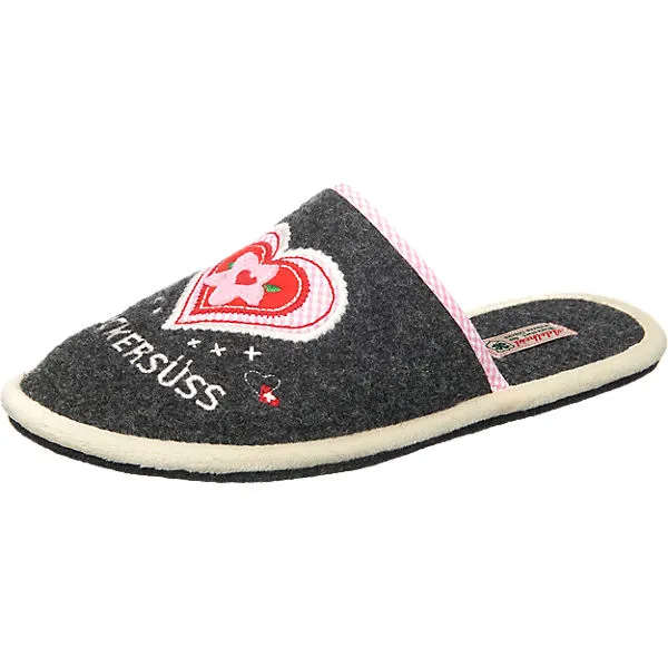 Der Zuckersüss Filzpantoffel mit aufwendiger Stickerei und einem rutschhemmenden Kleeblattdruck auf der weichen Filzsohle. Wunderbar bequem und ausgesprochen leicht zu tragen, eben dein unentbehrlicher Begleiter das ganze Jahr hindurch. Handgefertigt wird dieser Schuh aus hochwertigem italienischem Wollfilz in unserer Pantoffelwerkstatt in Portugal.