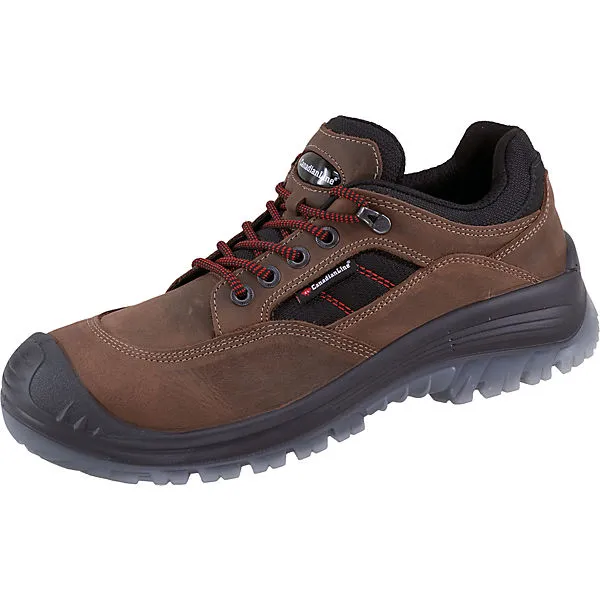 Sicherheitsklasse: EN ISO 20345:2011 S3 SRC, Zehenschutz: Kunststoffkappe, Durchtrittschutz: ENIGMA T-System – Kunststoffzwischensohle von Texon, Obermaterial: Leder / Nylon, Farbe: braun / schwarz, Innenfutter: Textil, Sohle: PU / PU transparent, bedingt öl-, benzin- und säurebeständig, antistatisch, Shockabsorber im Absatz, Weite: 11