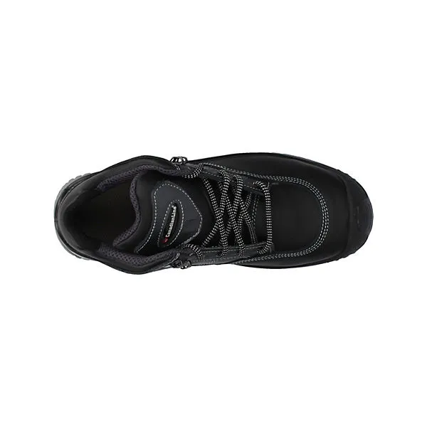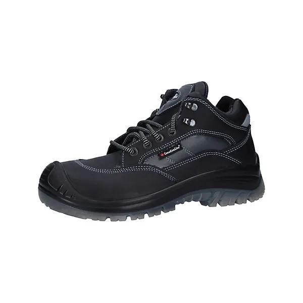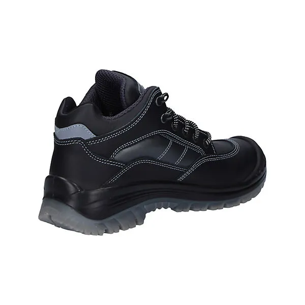 Sicherheitsklasse: EN ISO 20345:2011 S3 SRC, Zehenschutz: Kunststoffkappe, Durchtrittschutz: ENIGMA T-System – Kunststoffzwischensohle von Texon, Obermaterial: Leder, Farbe: schwarz / grau, Innenfutter: Textil, Sohle: PU / PU transparent, bedingt öl-, benzin- und säurebeständig, antistatisch, Shockabsorber im Absatz, Weite: 11