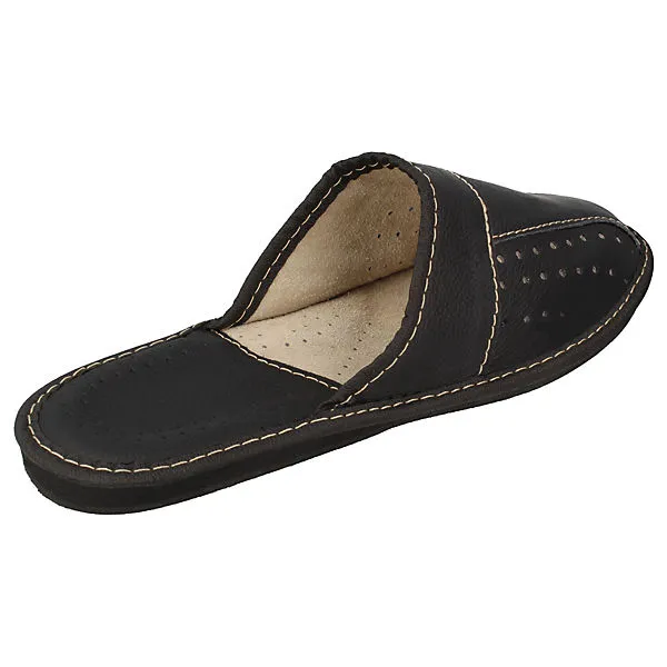 Dieser Pantoffel ist ein zeitloses Design, das niemals aus der Mode kommt. Das Obermaterial und die Innensohle sind mit Lüftungslöchern versehen, die Ihren Füßen ein angenehmes Klima verleihen. Der Slipper ist leicht an- und auszuziehen, sodass Sie schnell und flexibel in den Hausschuh schlüpfen können. Er ist in vielen Größen erhältlich, sodass die ganze Familie, egal ob groß oder klein, davon profitieren kann. Dank des hochwertigen, stabilen und festen Rindsleders ist der Pantoffel schmutzabweisend und lässt sich mit Wasser leicht reinigen.