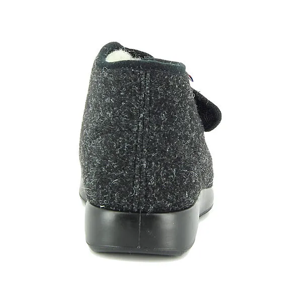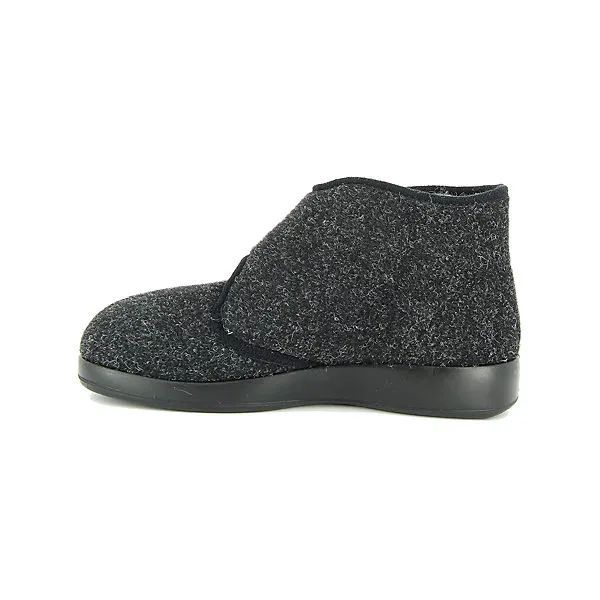 Bequeme Hausschuhe für Herren von Florett aus einem angenehm weichen Filzmaterial. Der Schuh hat eine normale Weite. Der Absatz ist durchgehend flach. Die Laufsohle ist aus Krepp. Der Klettverschluss zum einfachen und bequemen an- und ausziehen sorgt für einen guten Halt.Ebenfalls ist eine stufenlose Anpassung an den Fuß möglich. Die Schuhgröße fällt regulär aus.