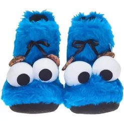 United Labels Sesamstraße Hausschuhe – Krümelmonster 3D Plüsch Booties Stiefel Cookie Monster Hausschuhe – Blau