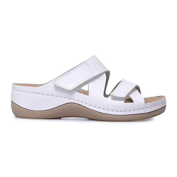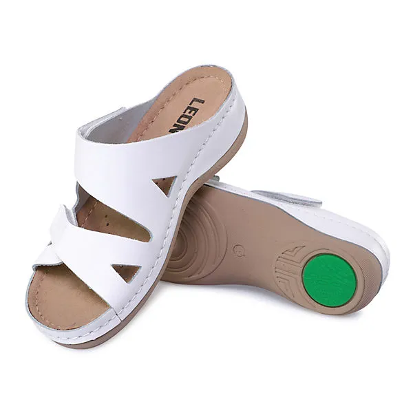 Astrid, die klassische Pantolette für Sie. Das modische gestaltete Oberteil aus extrem angenehmen Lederobermaterial und Futter sorgt für höchsten Tragekomfort. Eine zeitlose, schöne Pantolette, sowohl für innen als auch für draußen. Das weich gepolsterte Fußbett in Verbindung mit der langlebigen und dämpfenden PU-Sohle sorgen für den maximalen Tragekomfort. Die verstellbaren Klettverschlüsse sorgen dafür, dass der Schuh sich an jede Fußform optimal anpassen lässt. Zusätzlich macht die mit Leder bezogene Zwischensohle Astrid zu einem echten Hingucker. Komfort „Made in Europe“