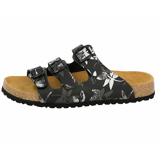 Pantolette für Damen aus Synthetik, verstellbare Schnallen, Lederdecksohle und dämpfungsaktive EVA-Laufsohle. Fußbett: Kork/Kautschuk