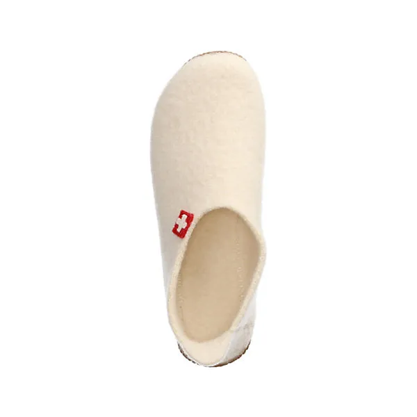 Living Kitzbühel Damen Hausschuhe / Homeslipper Beige Schurwolle – gefilztes Design – seitliches Kreuzmotiv – Anziehlasche – weiche Decksohle – extra flexible, rutschhemmende Laufsohle – (Farbe kann bei entsprechender Beleuchtung Weiß wirken)