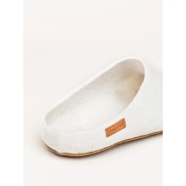 Ein anatomisch geformter Filzhausschuh, gefertigt aus der Wolle vom Tiroler Bergschaf und einer braunen Ledersohle. Die Kreuzung zwischen Tiroler Steinschaf und norditalienischem Bergamasker Schaf fühlt sich im rauen, alpinen Gebirgsklima besonders wohl. Bodenständige Farbmelierungen zeichnen die Wolle aus.