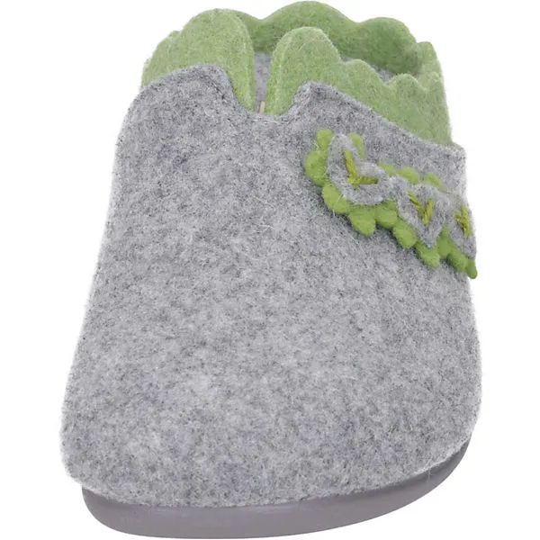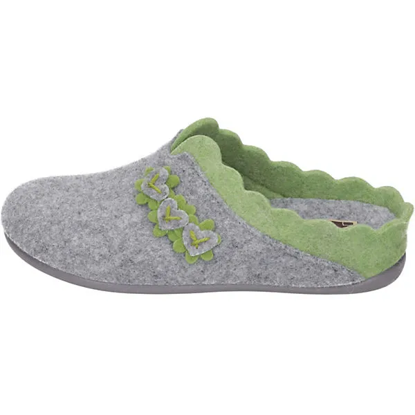 Bei diesem Produkt handelt es sich um einen Schuh aus der Kategorie Klassische Hausschuhe für Damen. Als Obermaterial wurde Filz verwendet und im inneren Bereich des Schuhs wurde ungefüttert und herausnehmbare Filzeinlage verarbeitet. Die Schuhweite dieses Artikels ist normal und somit standard. Als Verschlussart wurde Schlupfschuh gewählt und die Gummisohle rundet das Produkt ab.