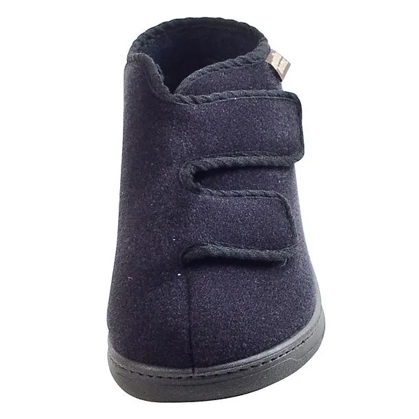 Bei diesem Produkt handelt es sich um einen Schuh aus der Kategorie Klassische Hausschuhe für Damen. Als Obermaterial wurde Textil verwendet und im inneren Bereich des Schuhs wurde Frottee-Futter und Textildecksohle verarbeitet. Die Schuhweite dieses Artikels ist bequeme Weite und somit etwas breiter. Als Verschlussart wurde Klettverschluss gewählt und die PVC-Sohle rundet das Produkt ab.