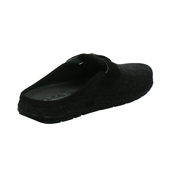 Entspannung pur: Dieser ROHDE EASYS Herrenhausschuh in Schwarz sorgt mit seiner Oberkonstruktion aus Filz für viel Komfort. Der Clog ist weich, warm und atmungsaktiv, und sitzt dank dem Leder-Riemchen mit Klettverschluss stets perfekt. Das bequeme Memoryfußbett und die federleichte PU-Sohle machen dabei jeden Schritt zum Vergnügen. Natürlich kannst Du Deine Füße darin auch einfach hochlegen.