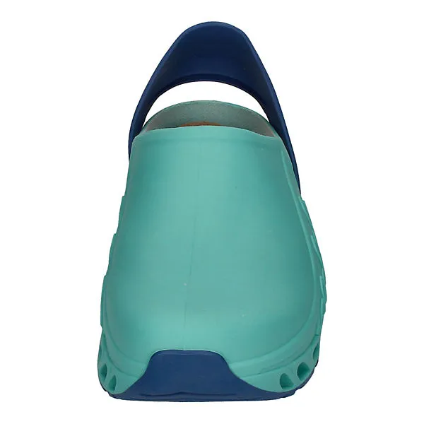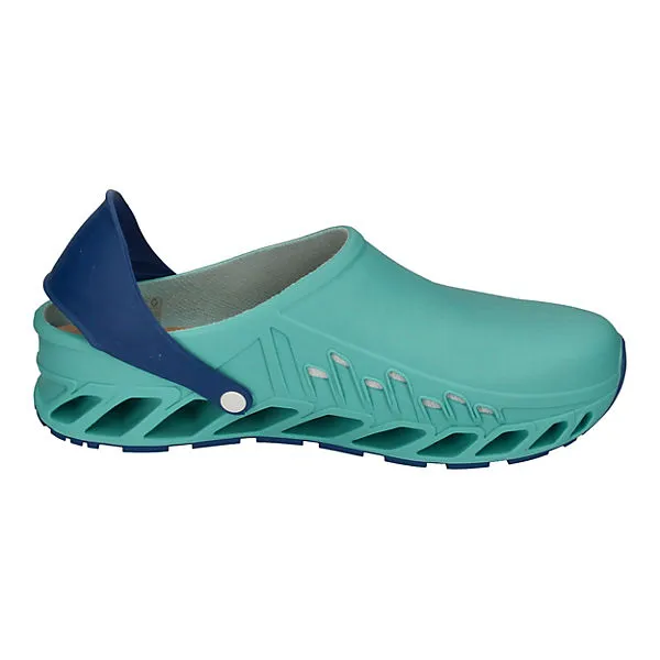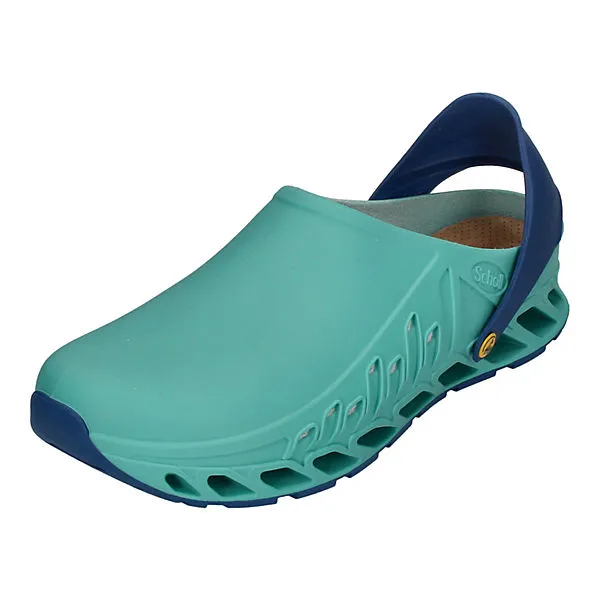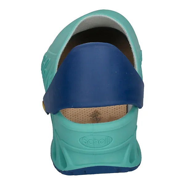 Scholl weiß, was Füsse wollen! Niemand braucht und verdient bequeme, ergonomische Schuhe mehr als Menschen bei der Arbeit. Scholl hat mit den EVOFLEX Clogs, hier in grün mit blau, Arbeitsschuhe geschaffen, die Sie nie wieder ausziehen wollen. Aber das muss auch niemand – denn in der Freizeit kann man diese gemütlichen Clogs natürlich auch tragen.
