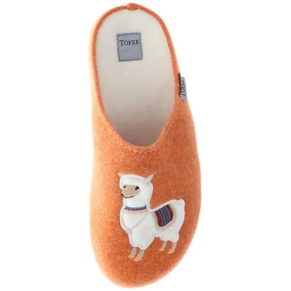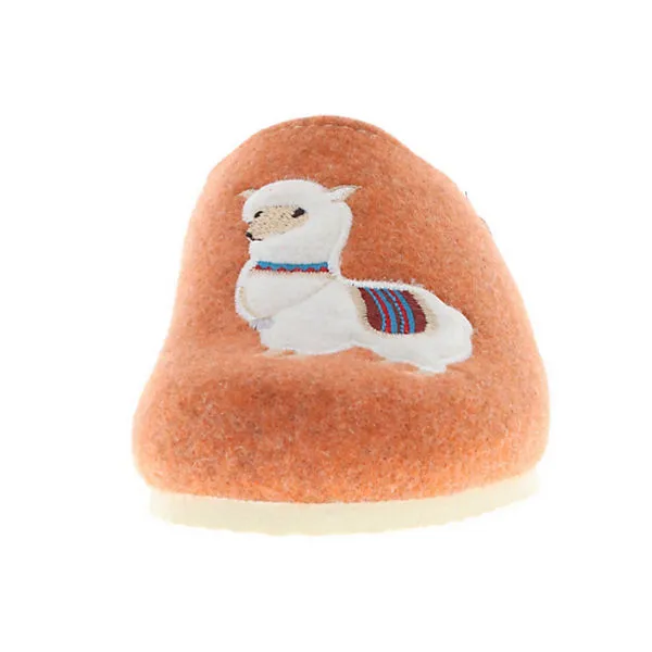 Das Obermaterial wurde aus ökologischem Wollfilz gefertigt und ist somit umweltfreundlich und angenehm weich zu tragen. Da das Innenmaterial und die Decksohle ebenfalls aus Filz bestehen werden die Füße angenehm warm gehalten. Optisches Highlight ist das gestickte Alpaka im Vorderfußbereich.