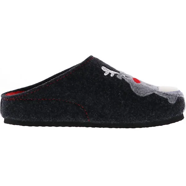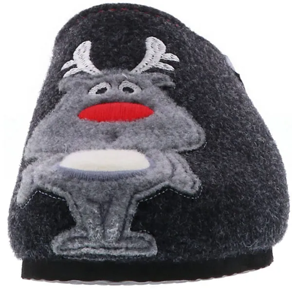 Das Obermaterial wurde aus Naturwollfilz gefertigt und ist angenehm weich. Da das Innenmaterial und die Decksohle ebenfalls aus Filz bestehen sind Deine Füße immer angenehm warm und sorgen gleichzeitig für einen einmaligen Tragekomfort. Optisch anziehend ist das auf dem Spann gestickte Rentier.