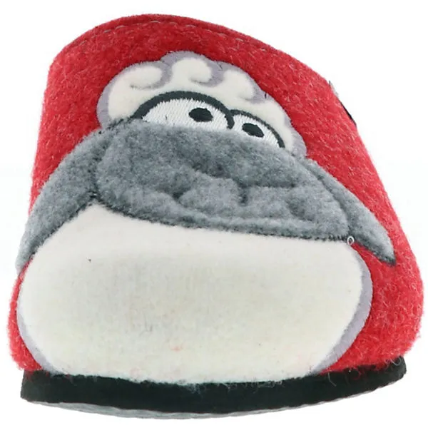 Das Obermaterial wurde aus ökologischem Wollfilz gefertigt und ist somit umweltfreundlich und angenehm weich zu tragen. Da das Innenmaterial und die Decksohle ebenfalls aus Filz bestehen werden die Füße angenehm warm gehalten. Optisches Highlight ist das gestickte Schaf im Vorderfußbereich.
