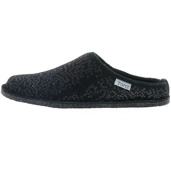 Diese gemütlichen Hausschuhe von TOFEE überzeugen durch die weiche Innenverarbeitung und durch die Decksohle und Laufsohle aus Filz. Das Obermaterial aus ökologischem Naturwollfilz ist umweltfreundlich und angenehm weich. Der Hingucker bei diesem Hausschuh sind die vielen kleinen aufgenähten Pailletten.
