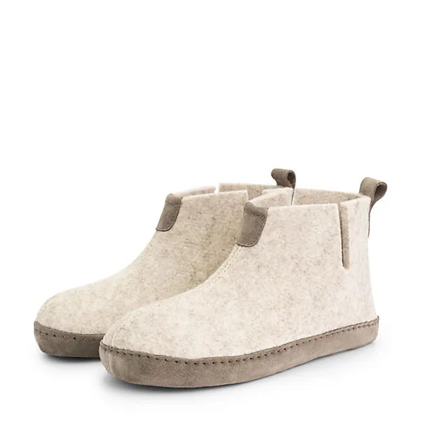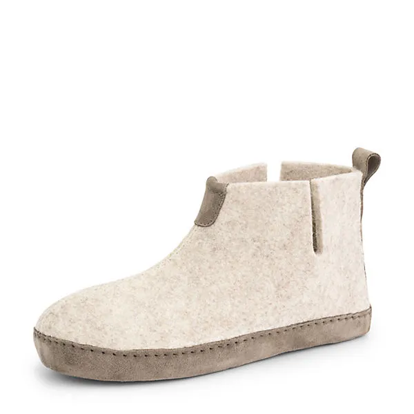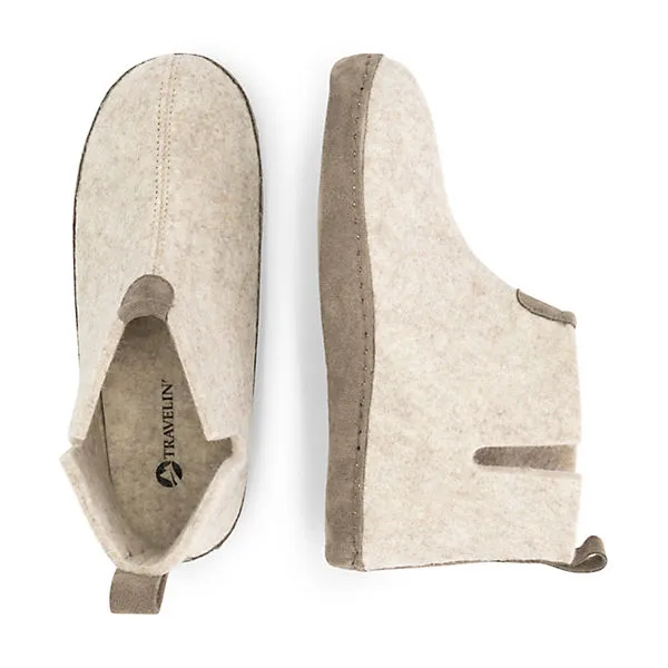 Die Stay-Home Pantoffeln von Travelin‘ sind aus hochwertigen Naturmaterialien gefertigt. Diese knöchelhohen Hausschuhe sorgen dafür, dass auch Ihre Knöchel warm bleiben. Die Öffnung an der Seite sorgt für ein einfaches Hineinschlüpfen. Der Hausschuh hat eine Laufsohle aus Wildleder und ist daher nur für den Innenbereich geeignet.