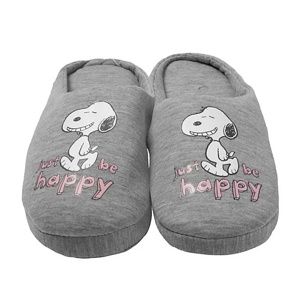 The Peanuts Hausschuhe für Damen und Herren Snoopy – Just be happy Unisex Puschen Slipper Pantoffeln GrauHausschuhe sind spießig und langweilig?Aber nicht diese muckeligen Slipper zum Hineinschlüpfen mit dem coolen Design!Schließlich sind gemütliche Pantoffeln das i-Tüpfelchen für die bequeme Homewear-Gaderobe, besonders an kalten Tagen!Dank kuschelig weichem Material sind diese Hausschuhe so gemütlich, dass du sie nie mehr ausziehen möchtest! Leider wird dies aber immer einmal wieder der Fall sein, aber umso besser ist es, dass man in die Hausschuhe dank der bequemen Form schnell hineinschlüpfen kann!Die Anti-Rutsch Noppen auf den textilen Sohlen der Pantoletten geben zusätzlichen Halt auf Fliesenböden oder anderen glatten Untergründen, sodass man mit den Slippern auch mal schnell durch die Wohnung tanzen kann, wenn einen die gute Laune vor lauter Wohlfühlfaktor überkommt! Diese Slipper sind gerade im Winter die passenden Begleiter für die Füße eines jeden Fans!Produktdetails: – Material: 100% PolyesterPflegehinweise: – Handwäsche- NICHT bleichen- NICHT trocknergeeignet- NICHT chemisch reinigen
