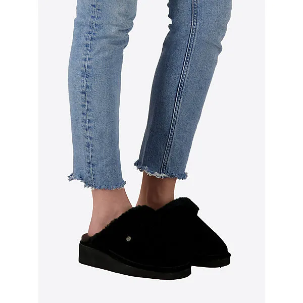 Der Hausschuh Alice ist ein absoluter Klassiker unter den Pantoffeln. Er ist komplett mit Plüsch Fell von Merinoschafen gefüttert. Merinofell hat die Eigenschaft temperaturregulierend zu sein, damit deine Füße immer angenehm warm sind, ohne zu schwitzen. Die robuste und flexible Sohle hat einen kleinen Keilabsatz, um dem Schuh das gewisse Extra zu geben.