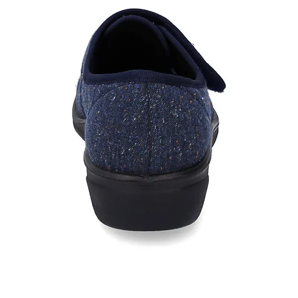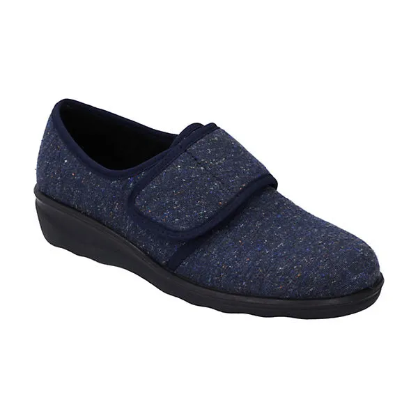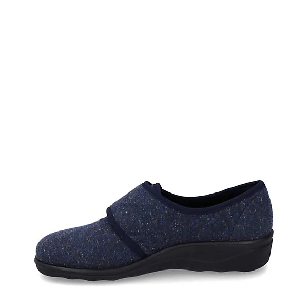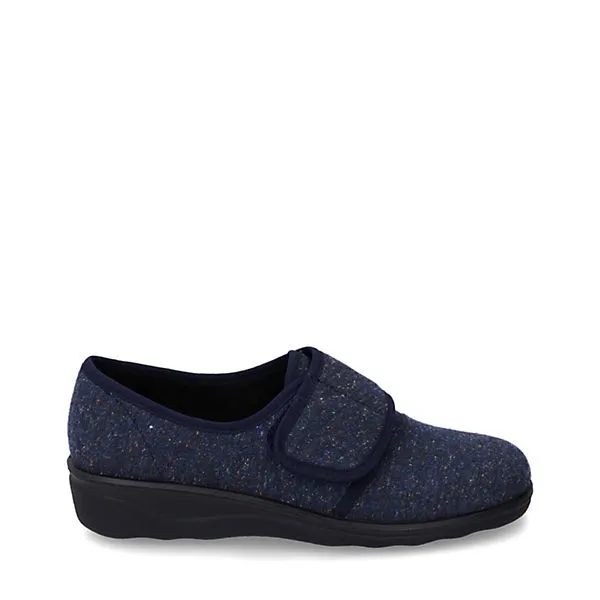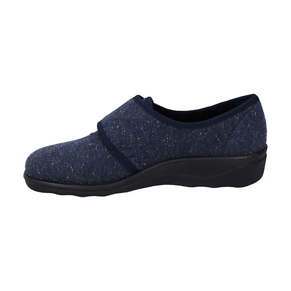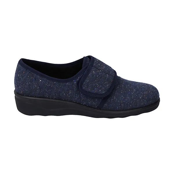 Verarbeitet ist der Hausschuh aus pflegeleichtem Textil, was den Schuh besonders schön macht. Das Modell Nice 80 ermöglicht einen bequemen Einstieg dank geschicktem Klettverschluss. Weite H ist für den breiten Fuß ideal geeignet. Daheim ist der Hausschuh ein gemütlicher Wegbereiter.